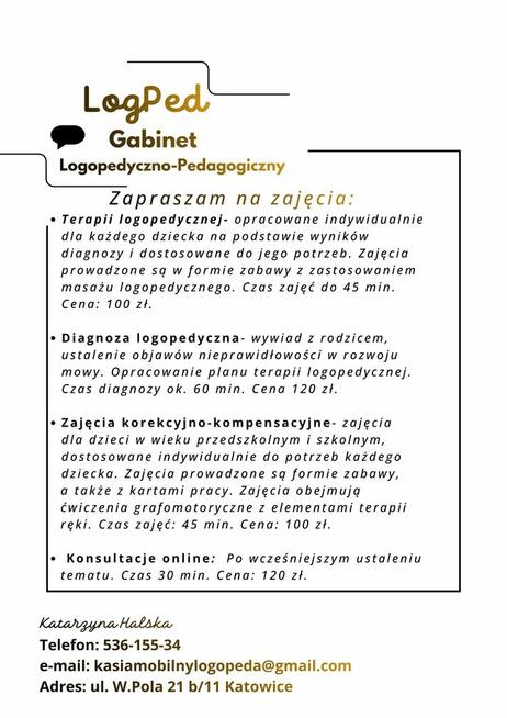 Zapraszam na zajęcia: Terapii logopedycznej- opracowane indywidualnie dla każdego dziecka na podstawie wyników diagnozy i ...